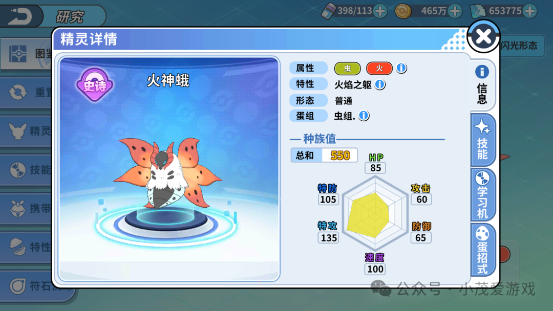 火神蛾,在资深玩家心中被誉为“平民战神”的宝可梦,其战斗力之强大不言而喻。它拥有的火焰之躯特性,不仅能够给对手带来不利的影响,还能提升队伍中精灵蛋的孵化速率。