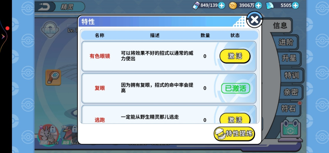 首先,在孵蛋屋里,孵出一个闪光摩鲁蛾,然后性格选胆小,增加速度减少攻击,反正对摩鲁蛾来说,攻击没用,他走的是特攻路线 ,其次,特性选复眼,增加招式的命中率 ,再然后,符石的话,全选速度,这样有整体加成 。