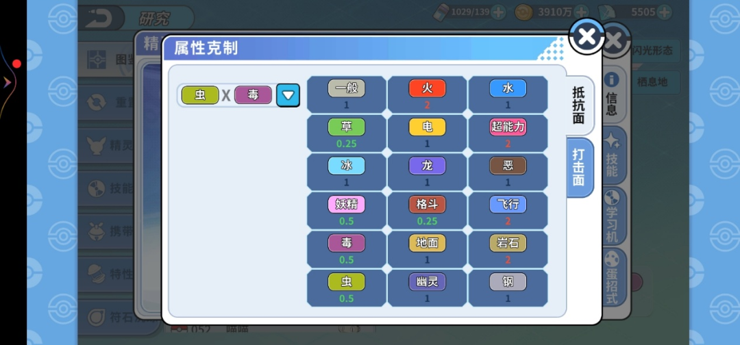 这么看的话,还是比较不错的 ,只有四个二倍弱点 ,四倍抵抗草和格斗,并且因为是虫加毒系,所以,他抗毒,抗毒,抗毒 !重要的事情说三遍 !有许多大佬的精灵很厉害 ,但也会输,便是因为剧毒这个技能 ,剧毒状态的效果是回合数越长,它受到的毒素伤害也就越多 ,但是很不幸毒系或者钢系,它免疫毒素的侵蚀 ,所以摩鲁蛾它就不怕剧毒!这点很重要 !说起来唯一不好的便是,蝶舞这个技能比较靠后才能学,还有他的技能池 ,打击面不是很多 ,钢系完全免疫毒,所以如果带污泥炸弹的话,对钢系没有效果,但可以克制妖精系,对了,污泥炸弹是一个传说学习机,如果运气不好的话,建议学虫鸣和精神强念 ,这个配招也是不错的 ,这里就不再多说了,下一条细讲!